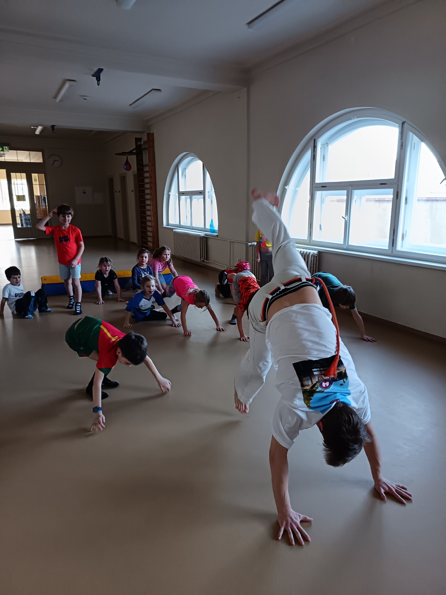 První stupeň si na tělocviku zkoušel capoeiru pod vedením trenéra Marka z klubu Vem Camará Capoeira Pardubice, https://pardubice.vemcamara.cz/. V tomto klubu už cvičí i několik naši žáků i abasolvetnů. A je milé, že se nám někteří vracejí na pomoc. ![]()