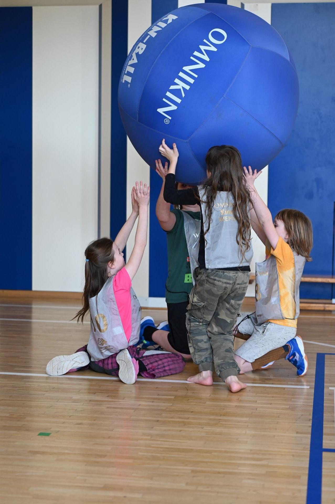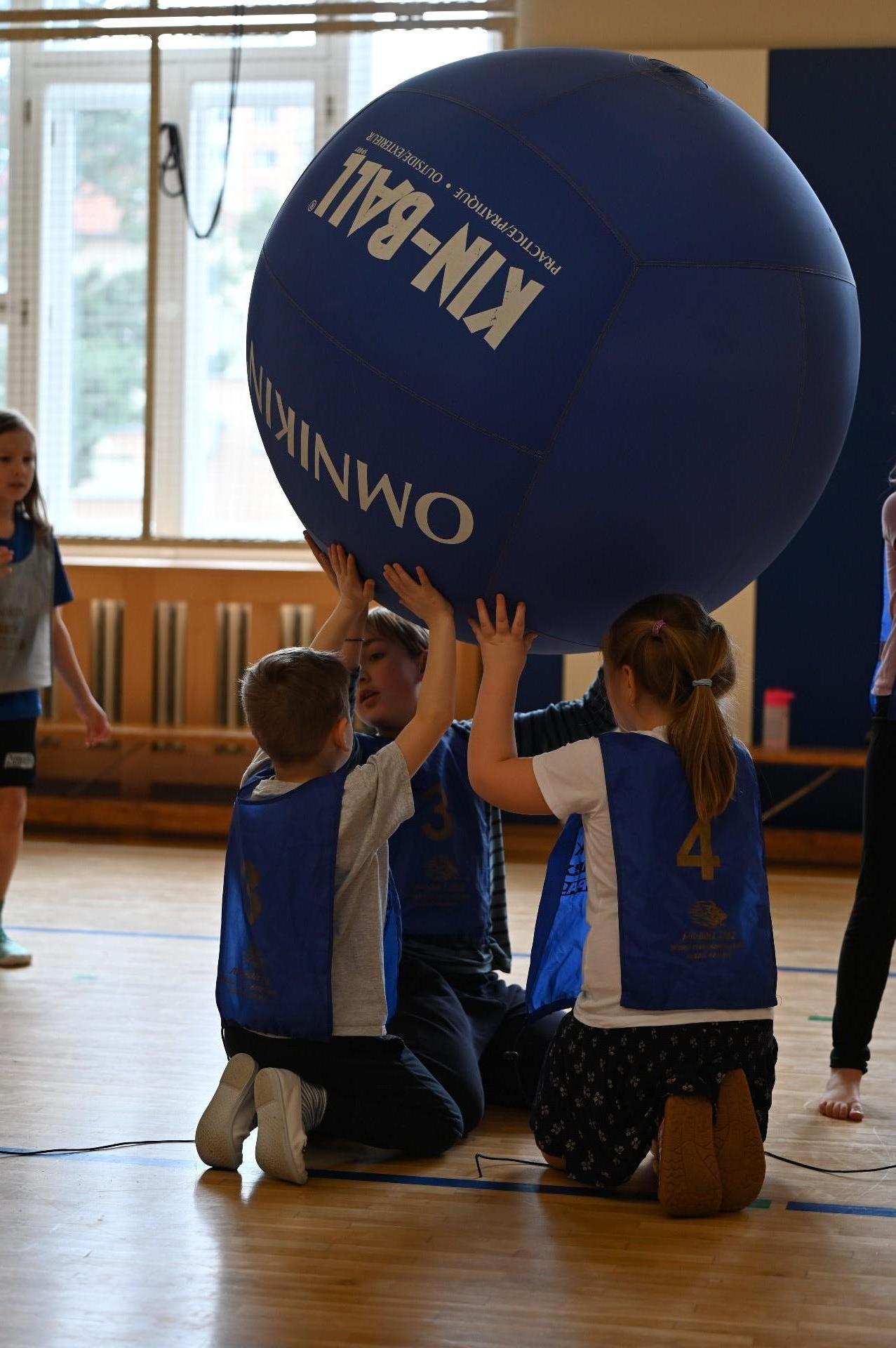 Kin-ball pro 1. stupeň. Tréninky vedla naše deváťačka Anika, která je aktivní hráčkou klubu Kin-ball Pardubice. A už loni v rámci ročníkové práce prokázala, že je schopna sama zorganizovat turnaj nebo trénink.
