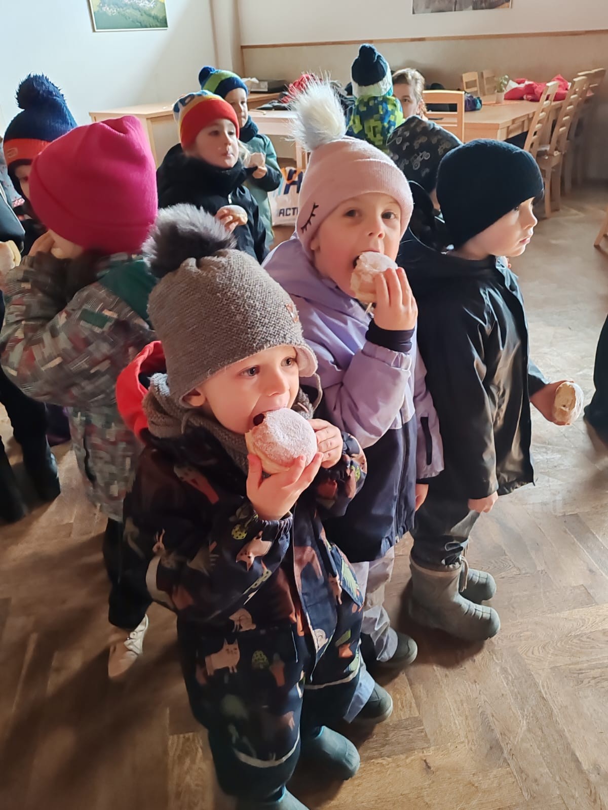 Čepice, koblížky, jitrnice, koláče, preclíky, veselí a karneval 🎉. Všechno bylo a bylo to krásné, ale teď už ve školce vyhlížíme JARO!